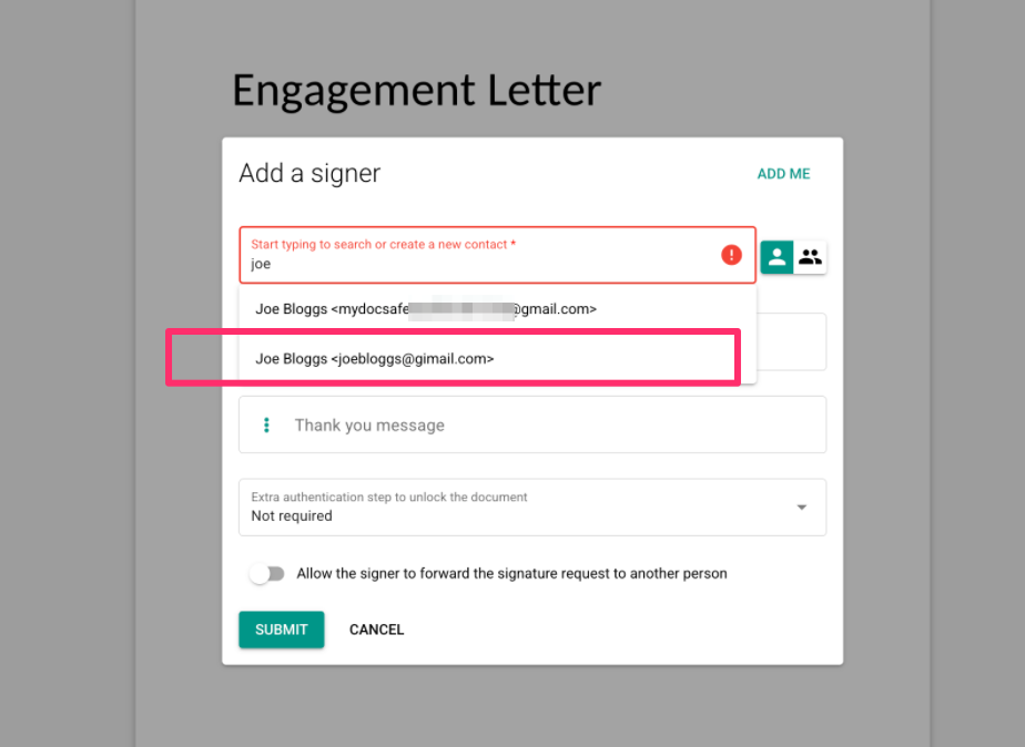 La próxima vez que envíe un documento a la misma persona, la dirección de correo electrónico incorrecta seguirá apareciendo en el menú cuando comience a escribir el nombre: