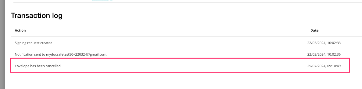 Se si lascia deselezionata l'opzione "Annulla tutte le richieste di firma elettronica", le transazioni di firma elettronica in sospeso rimarranno attive anche se il documento originale sarà stato eliminato.