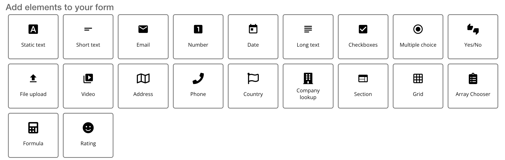 • ArrayChooser - an advanced widget used to reference a list of user defined answers (enterprise plans only)