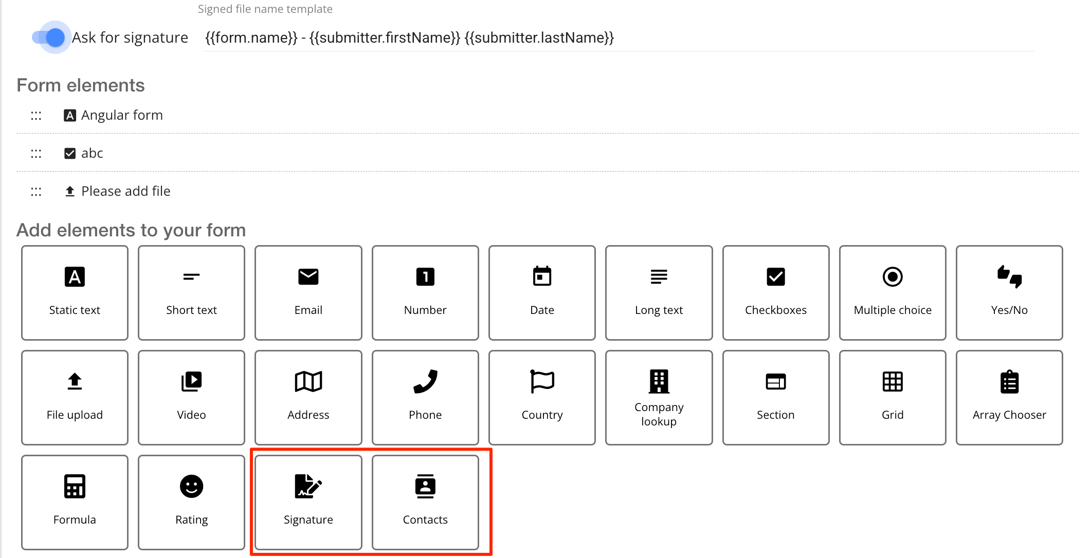 • Signature - place where the signature field should be placed in case you want the form to be signed