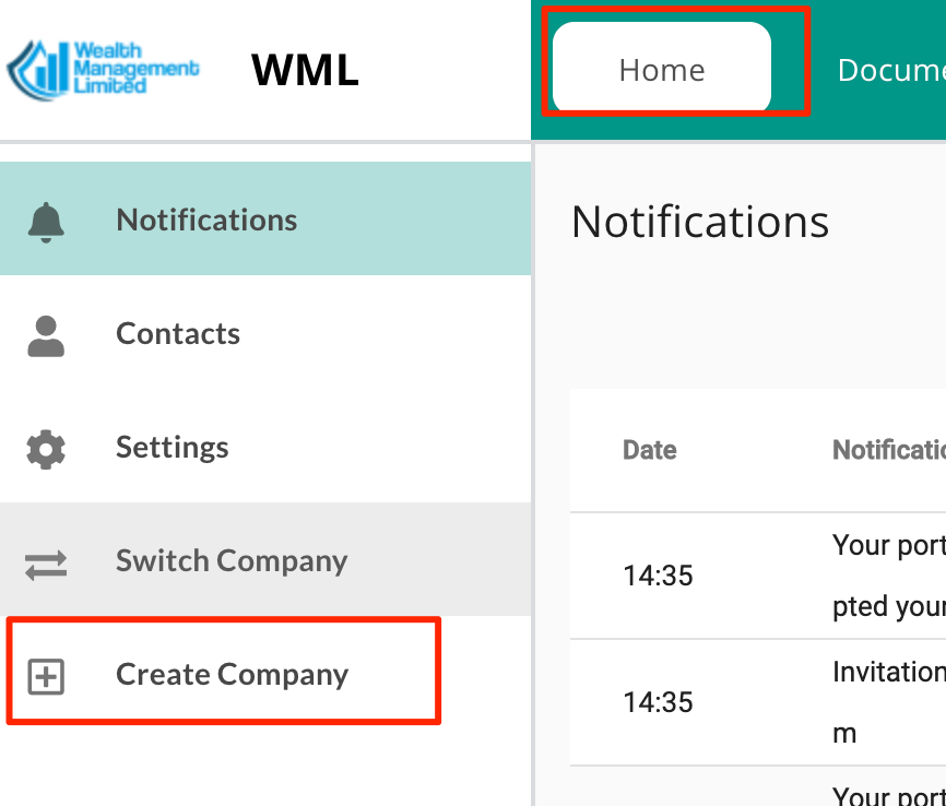 Als u een actief abonnement hebt en toch een nieuw, onafhankelijk account wilt aanmaken, ga dan naar Home en selecteer 'Bedrijf aanmaken'.