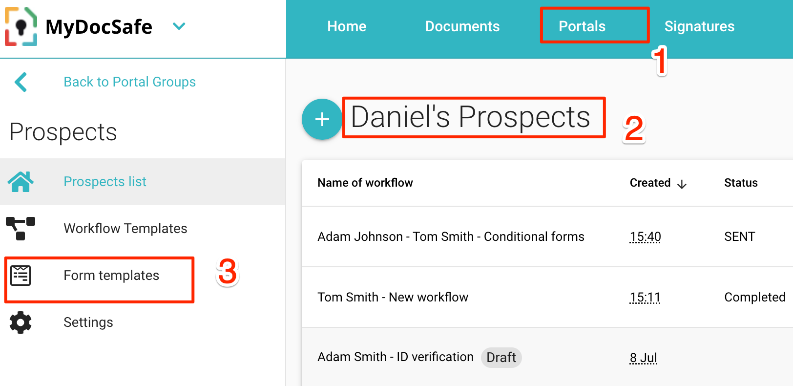 Przejdź do swojej grupy potencjalnych klientów. Jeśli jej nie masz, przejdź do Portali, kliknij przycisk „+” i utwórz grupę potencjalnych klientów. Przejdź do Szablonów formularzy i utwórz formularz.