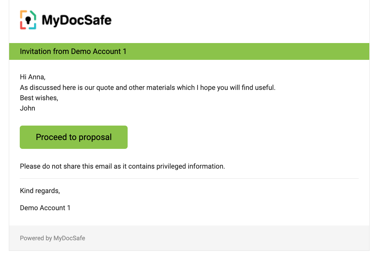 6. Your prospect will receive an email with button that leads to the proposal: